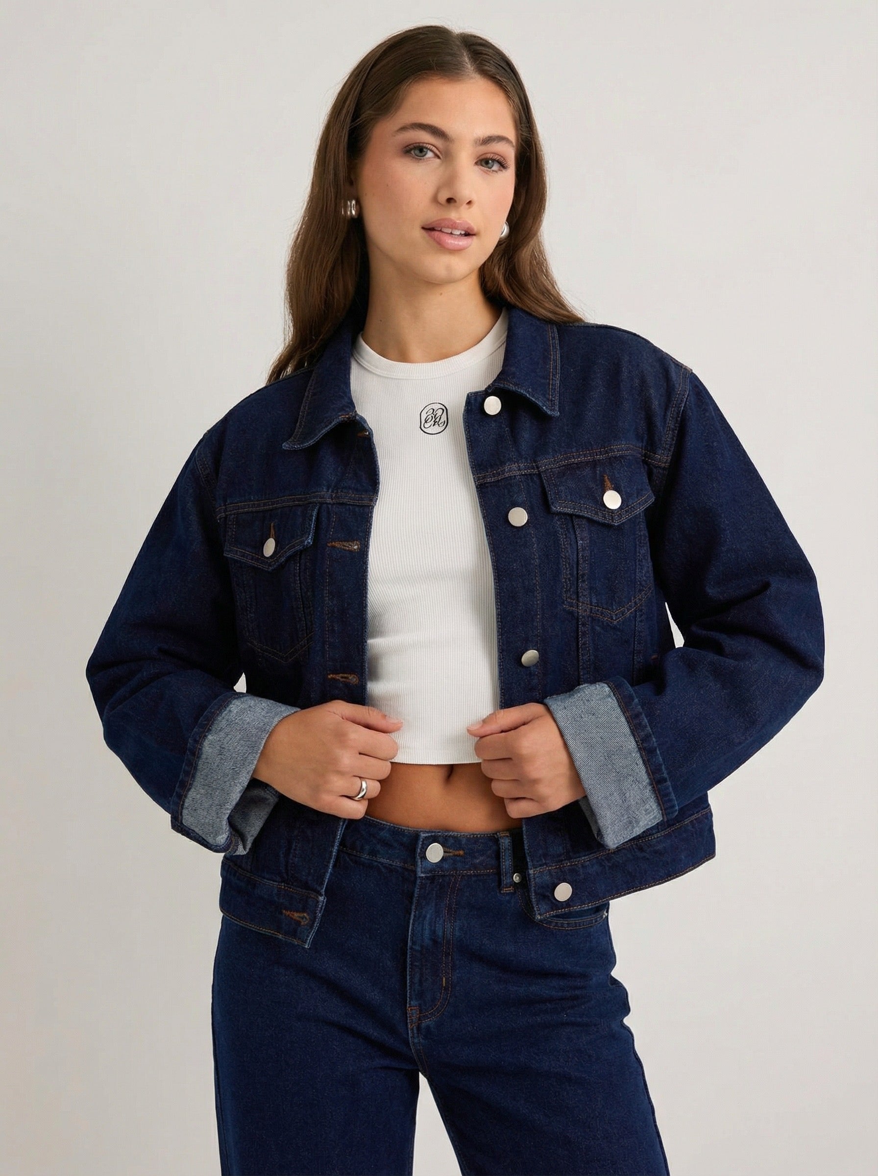 ג׳קט ריברה | ג׳קט ג׳ינס כהה בגזרה קלאסית