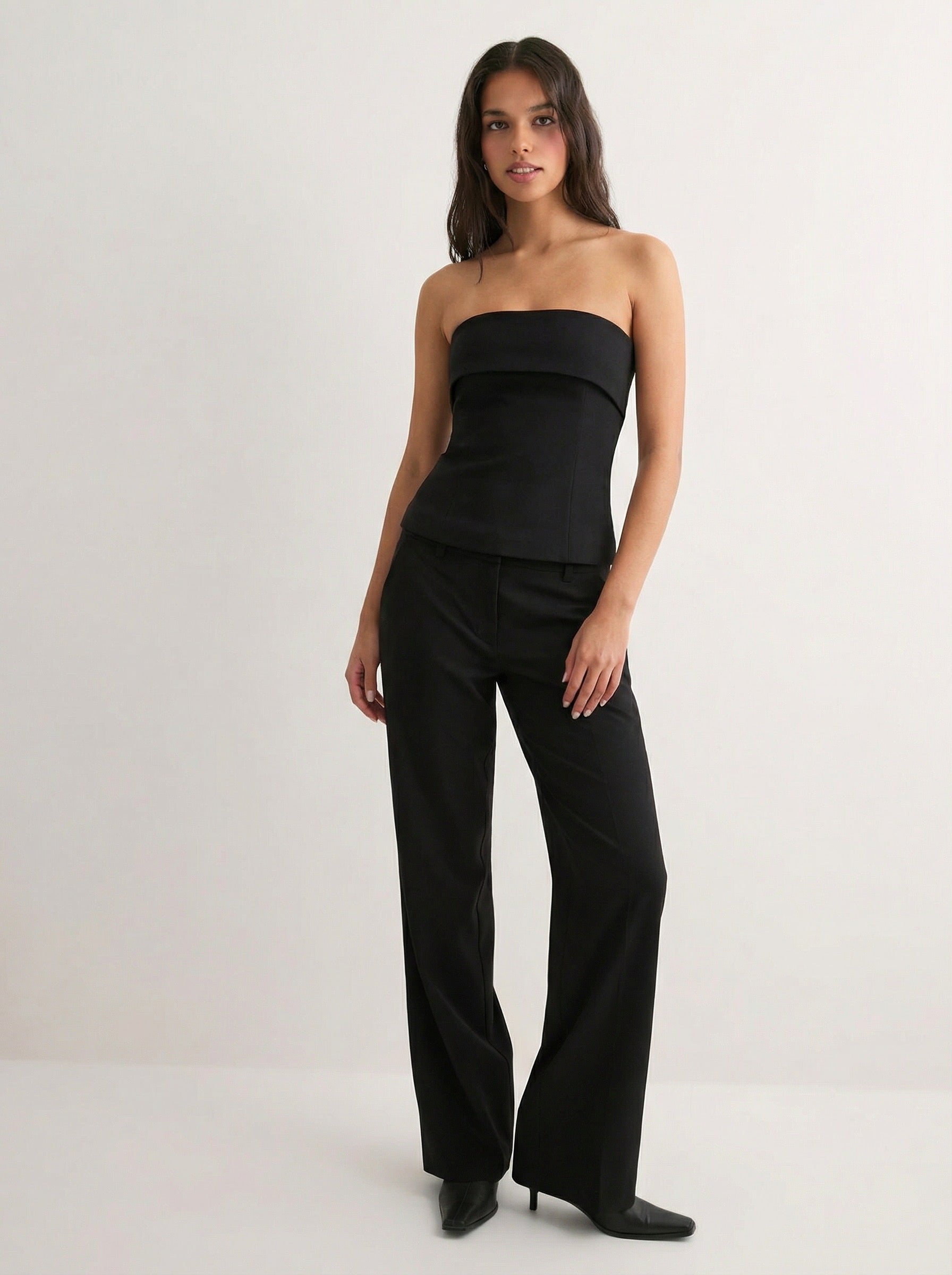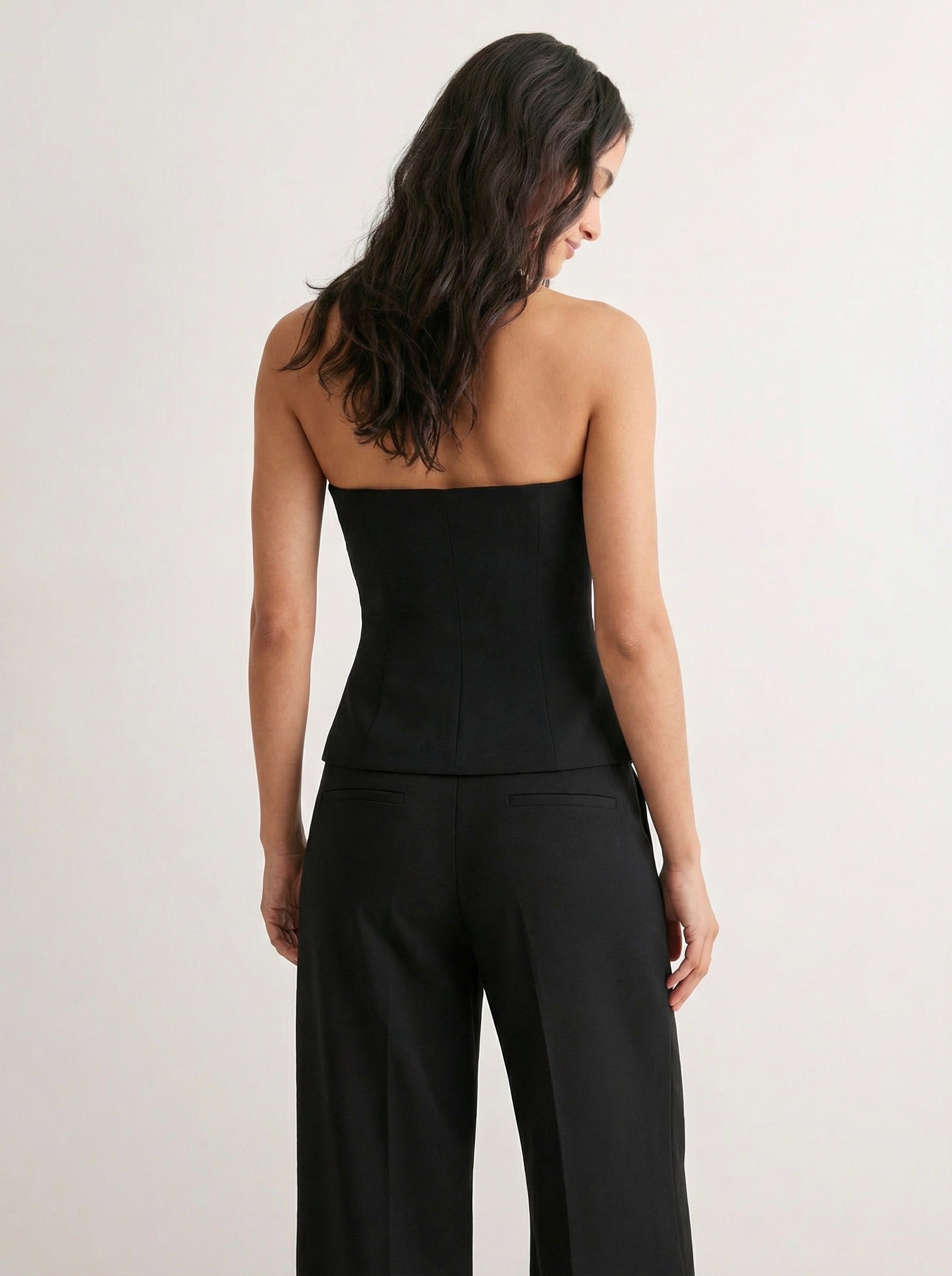 טופ וינה | סטרפלס שחור מחויט בגזרה ישרה