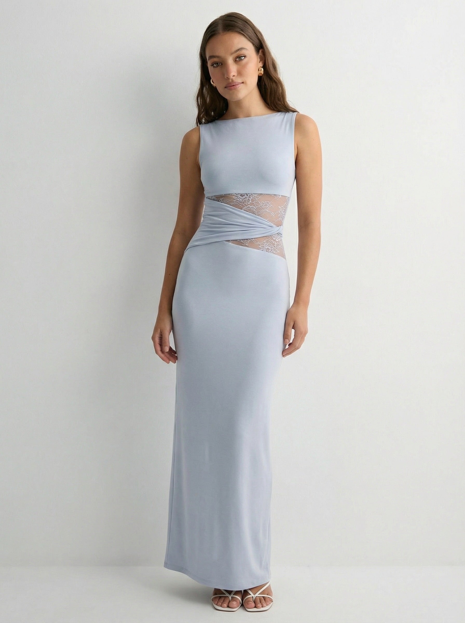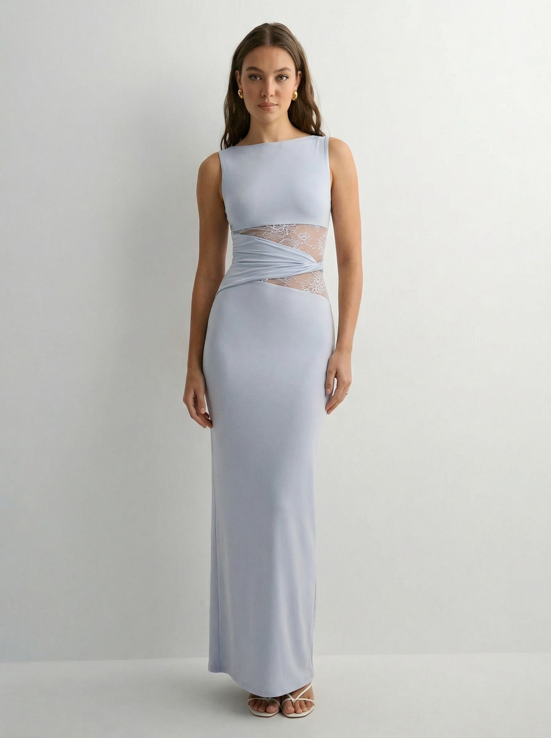 שמלת אנג׳ל | מקסי תכלת עם תחרה