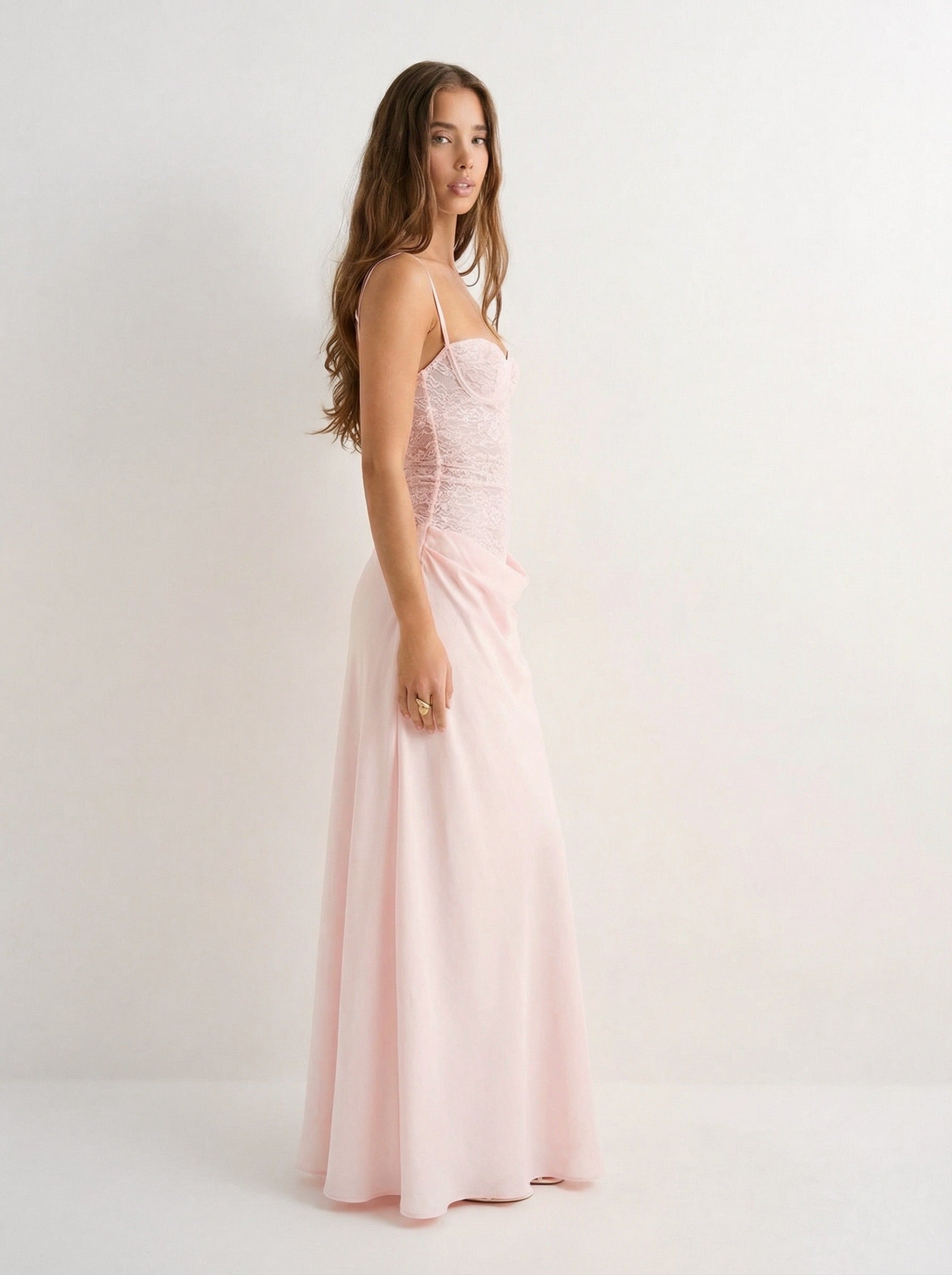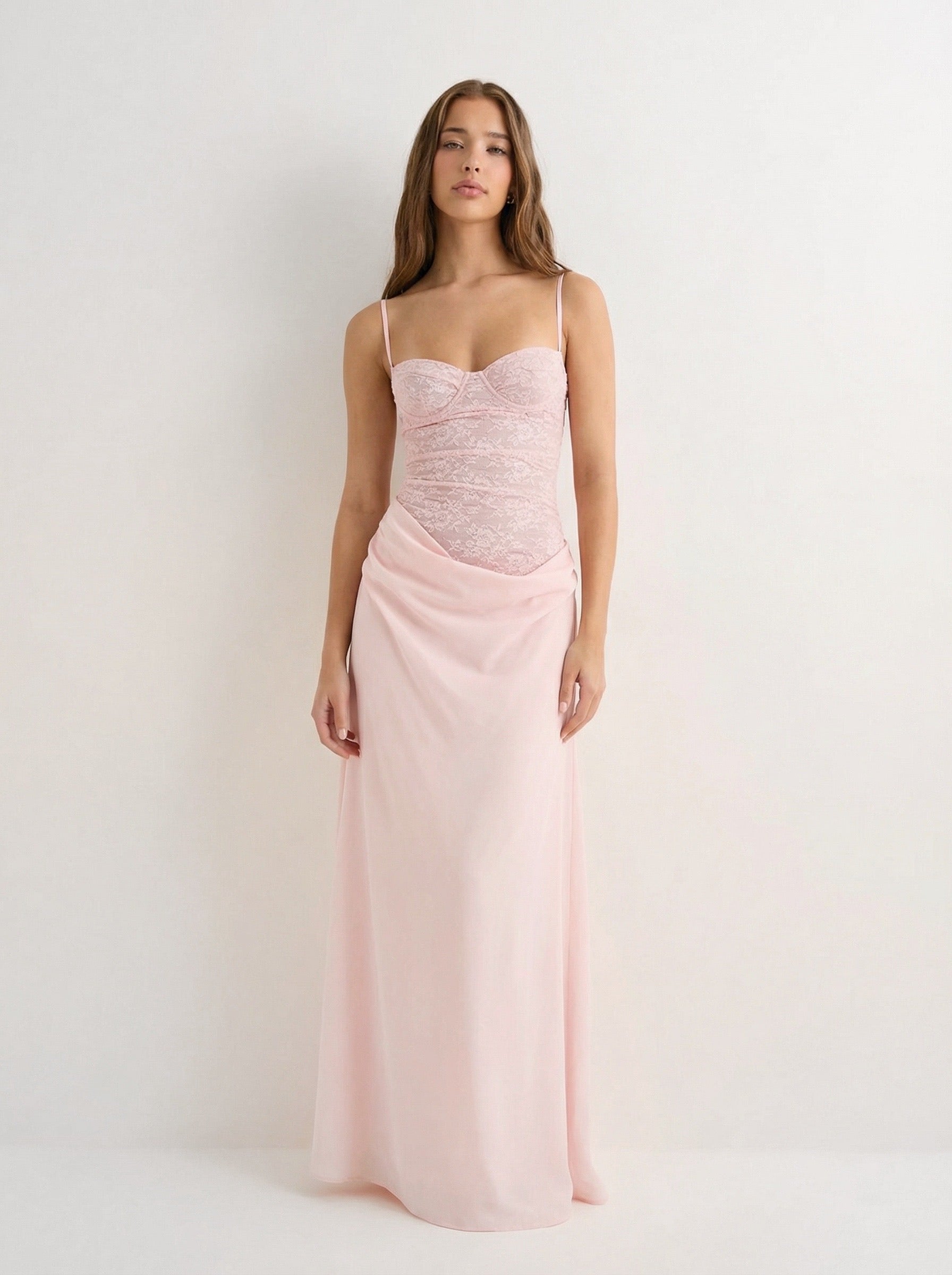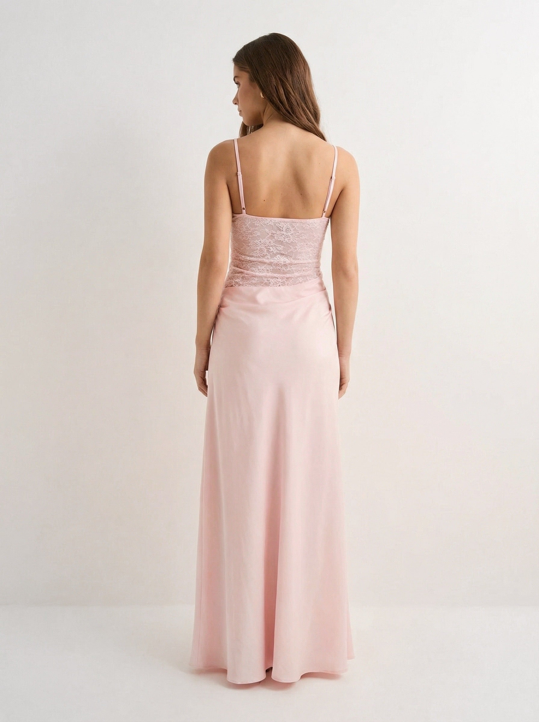 שמלת מאיה | מקסי ורודה בגזרה אלכסונית עם גב נשפך