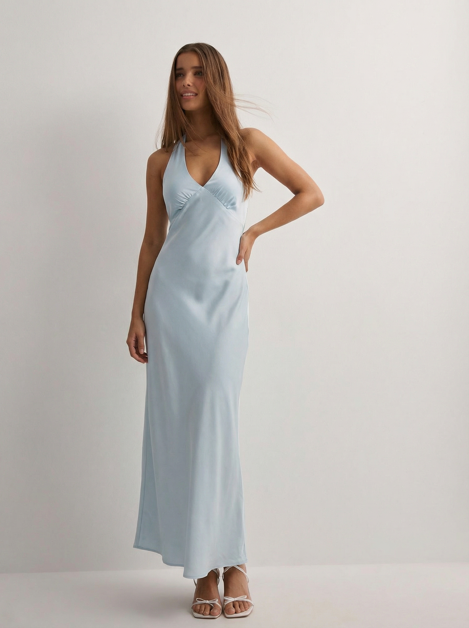 שמלת סאטן מקסי | גב פתוח הלטר - כחול
