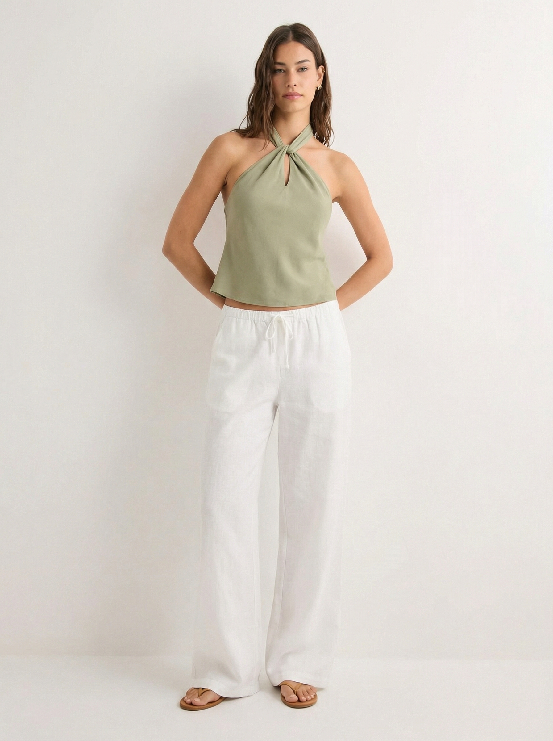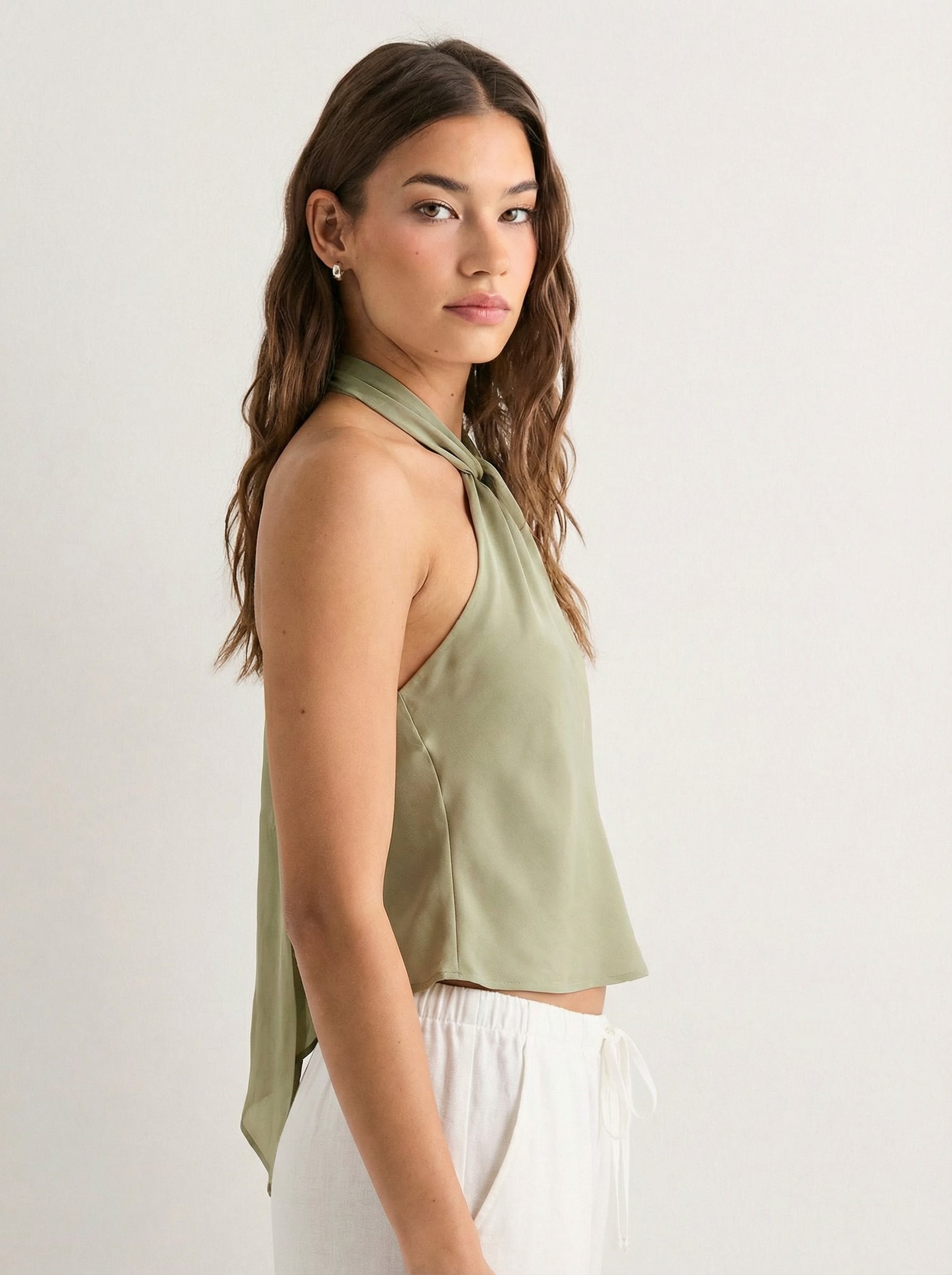טופ אמבר | הלטר סאטן ירוק עם גב פתוח