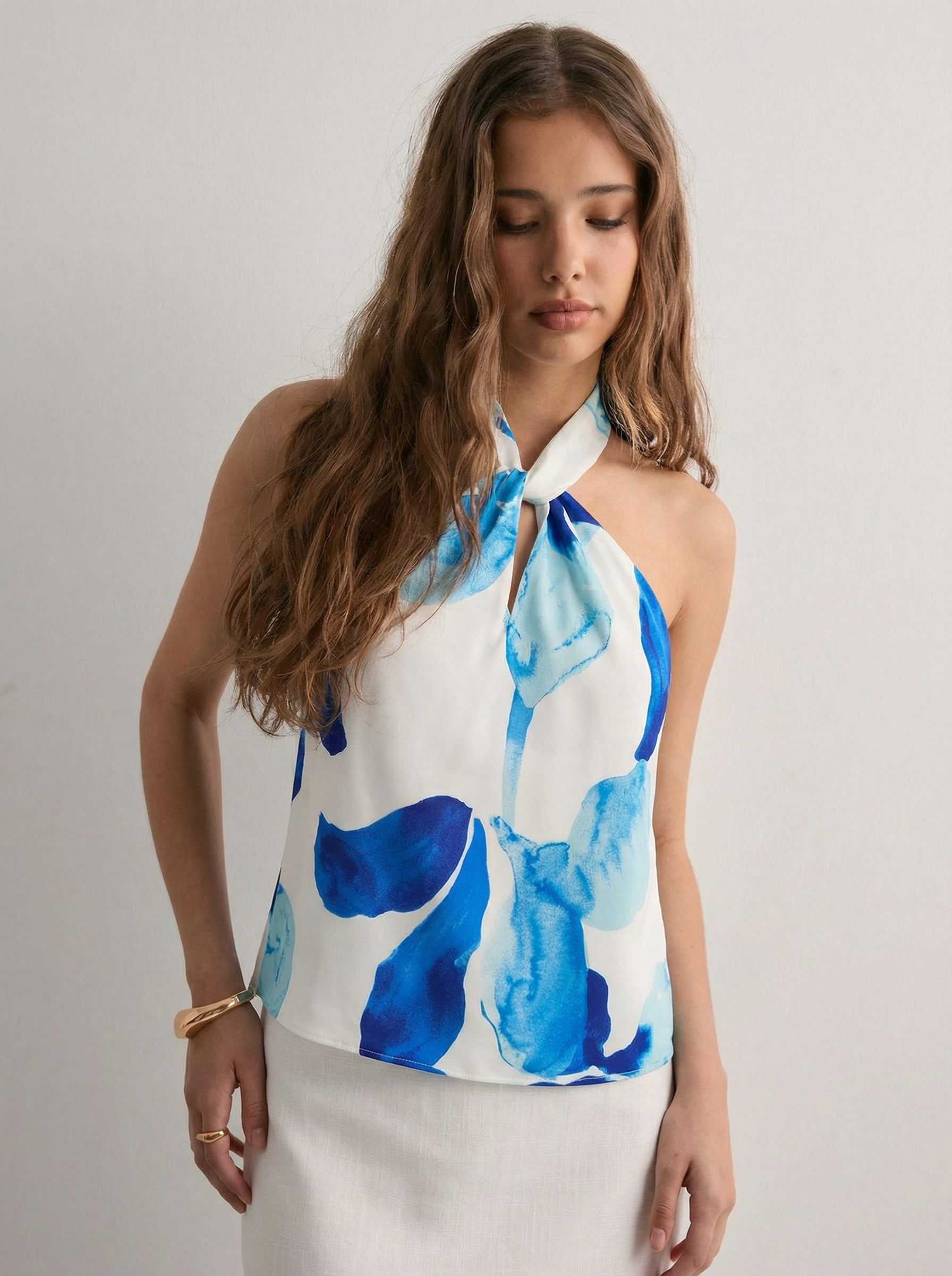 טופ אמבר | הלטר סאטן אקווה בלום עם גב פתוח