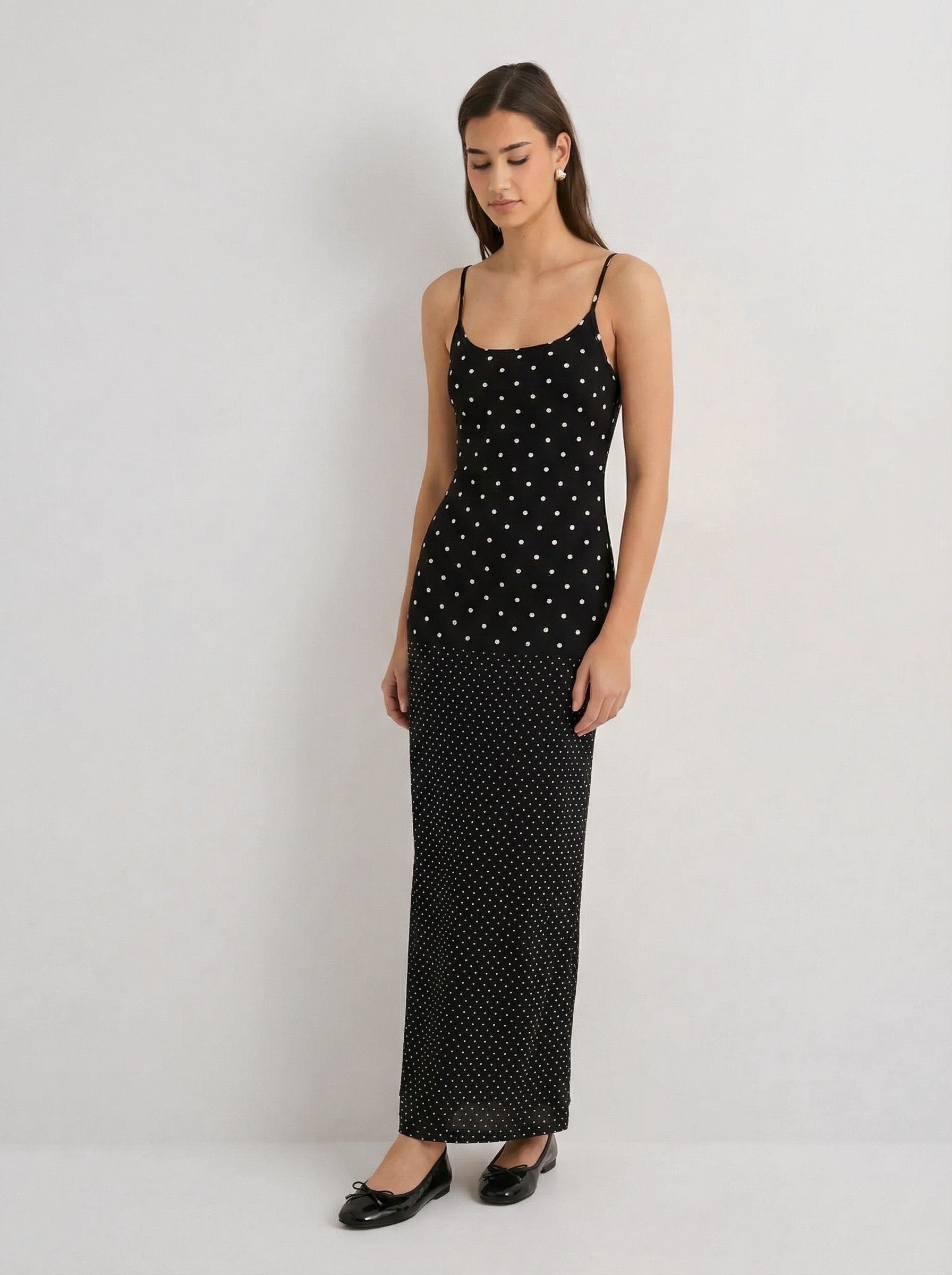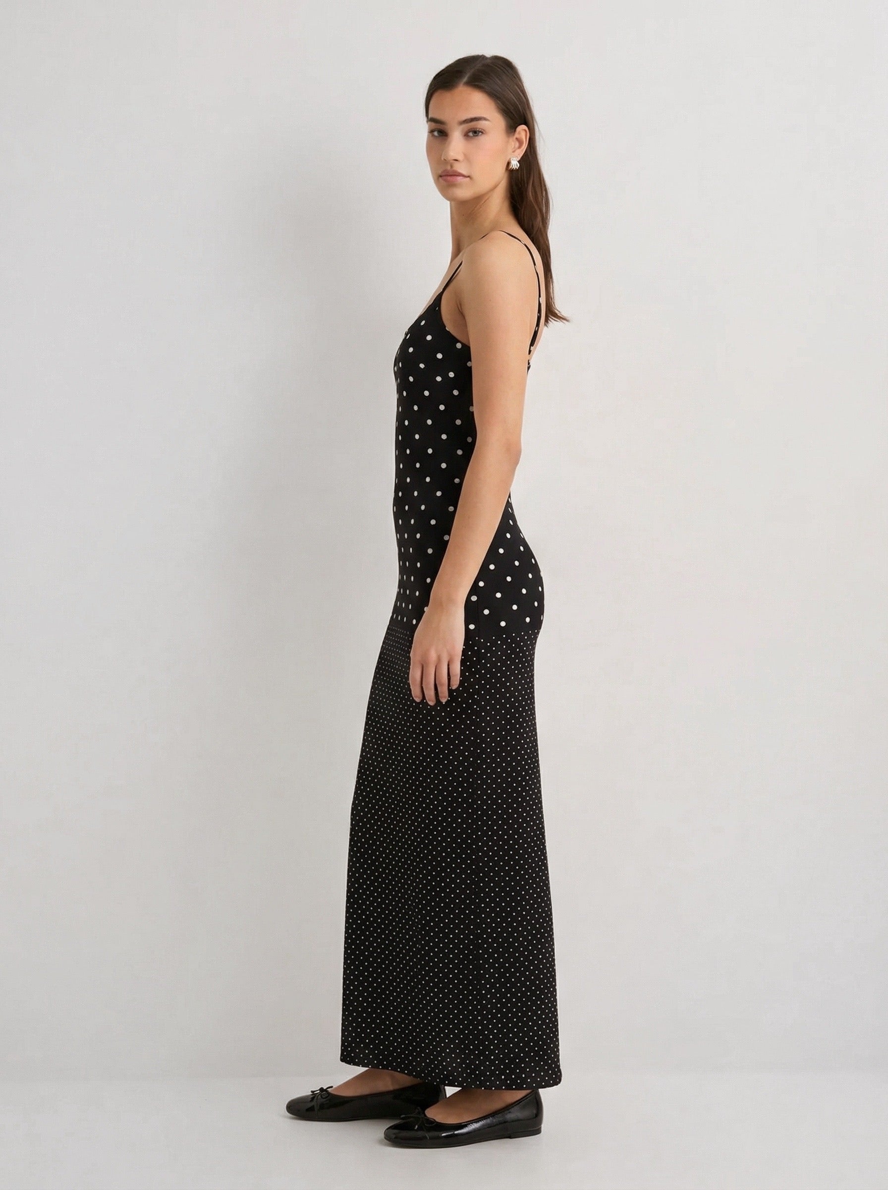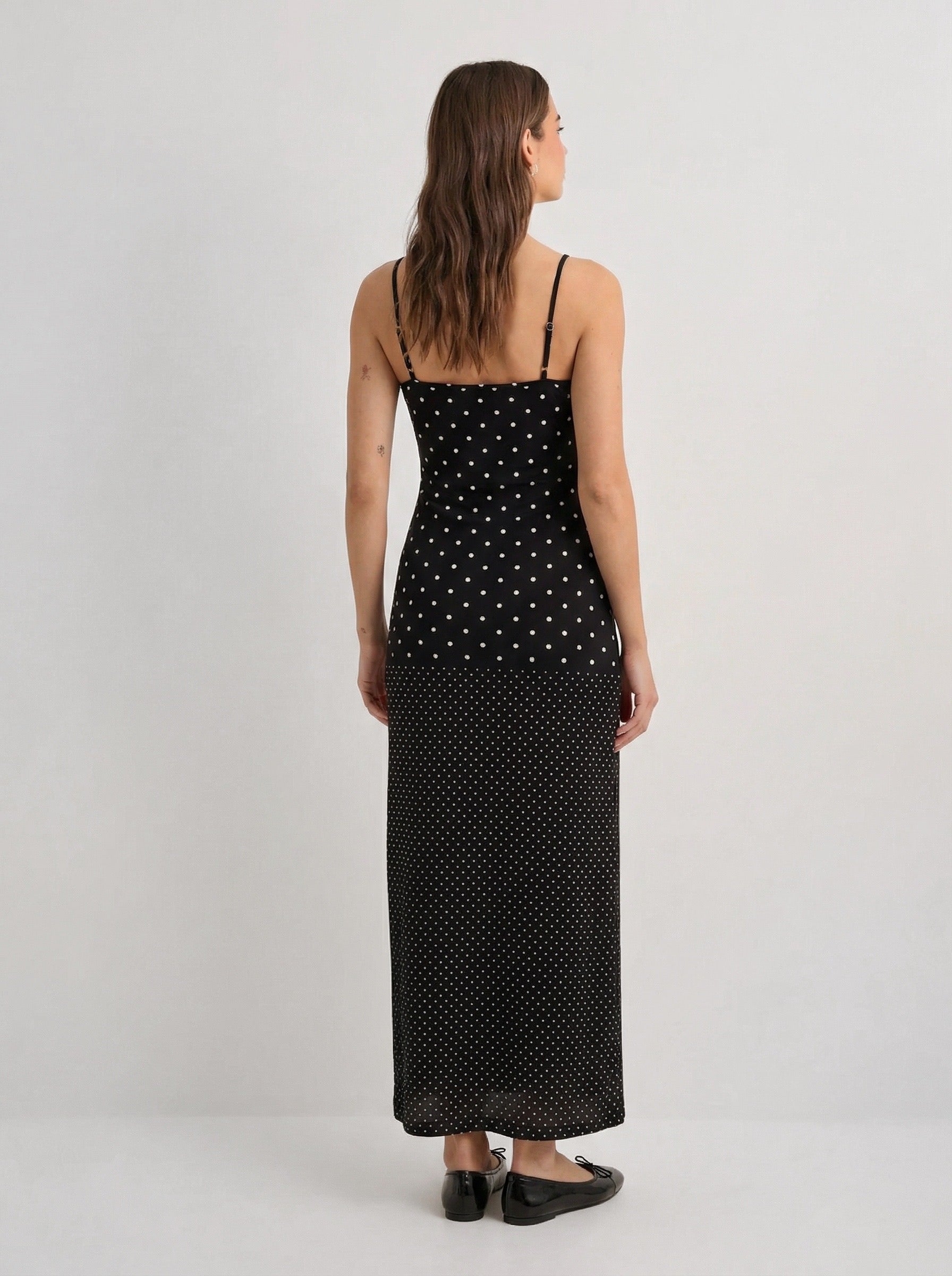 שמלת סופיה | מקסי נקודות שחורה בגזרת סליפ