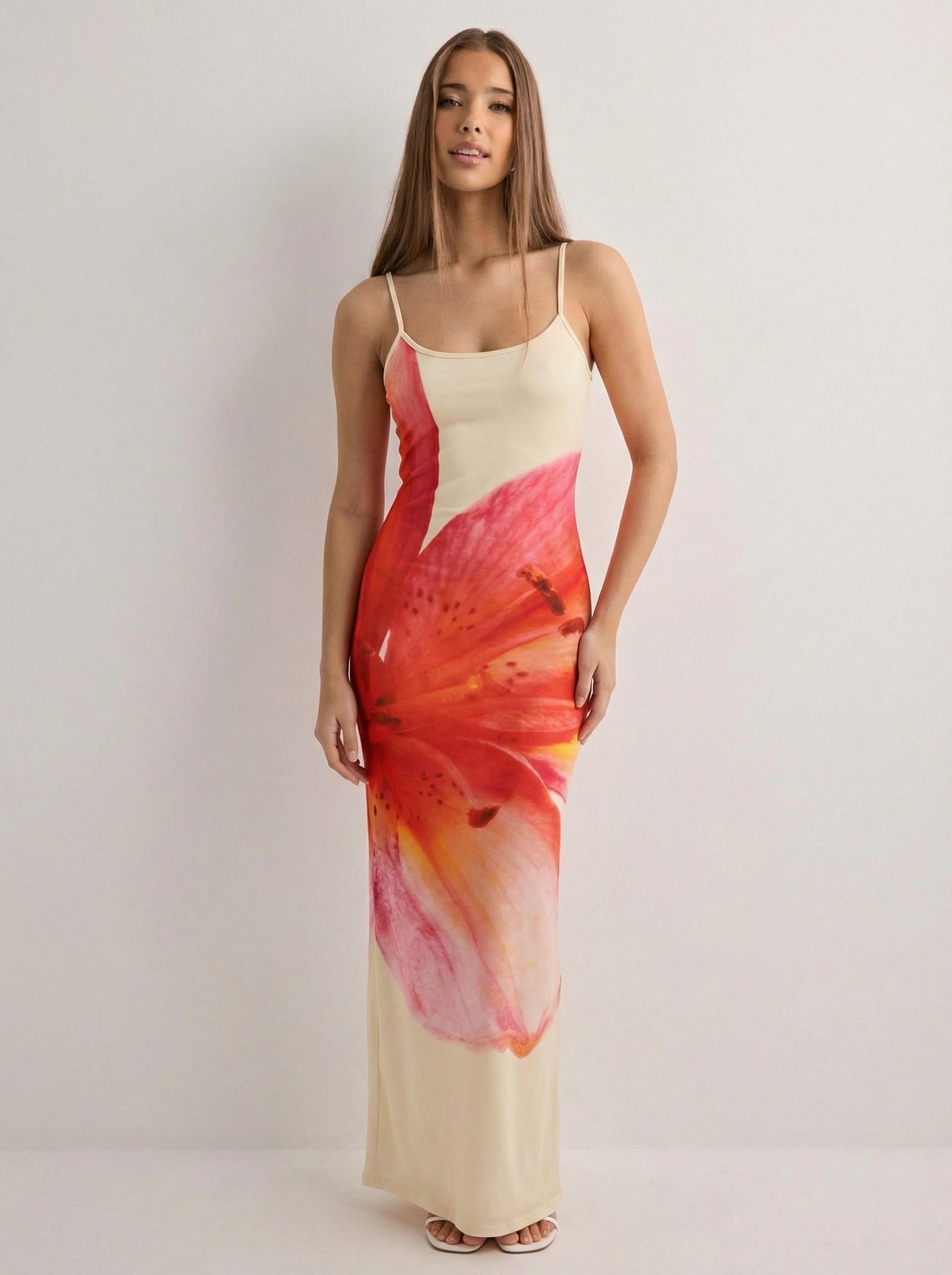 שמלת מקסי בד מש | הדפס פרח אקסקלוסיבי